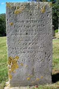 - 3. Moses Witherell, Capt.; (Abt.1809 – August 1871); Married (1) Abby G. Parker (Abt.1822 – ?) in int. November 23, 1832 & married (2) Roxanna Fisher/Fish (Abt.1839 – 1867) on November 23, 1866 & married (3) Jane E. Marsh (1833 – 1900) (Joseph Marsh, Rev. & Mary A. (–)) in Sandwich Ma. on August 15, 1869; Jane married (2) Sylvanus McAllister (1808 – 1887) (Thomas McAllister & Nancy Smith) in Sandwich Ma. on October 31, 1872 & married (3) Luther Douglas in Bourne Ma. on October 17, 1889; Sylvanus married (1) Susan Long (1810 – 1871) in Dennis Ma. on December 12, 1839; Two children of Moses & Abby are buried next to their grandmother Sarah Witherel in Cataumet Cemetery; Sylvanus & Susan are buried in Pocasset Cemetery.